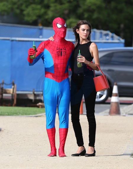 Alexa Chung przytula Spider Mana, plan zdjeciowy