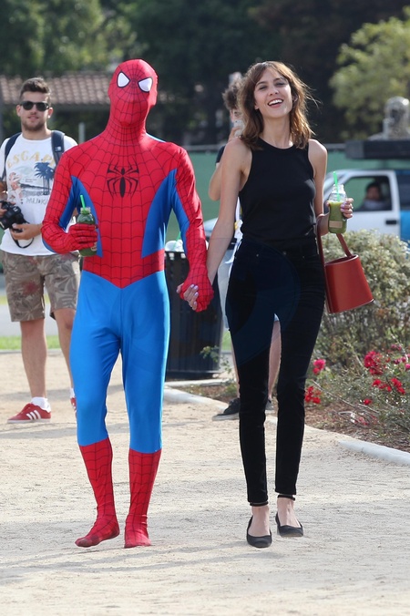 Alexa Chung przytula Spider Mana, plan zdjeciowy