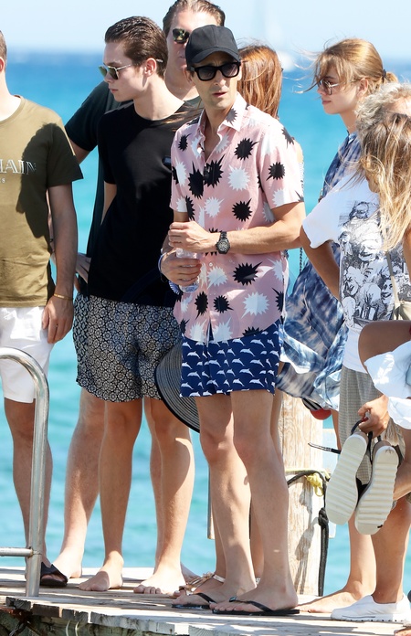 Adrien Brody we wzorzystej koszuli z dziewczyna w Saint Tropez