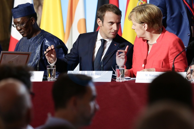 Idriss Deby, Emmanuel Macron, Angela Merkel