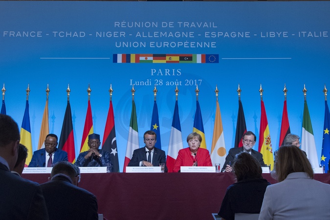Mahamadou Issoufou, Idriss Deby, Emmanuel Macron, Angela Merkel, Mariano Rajoy, Paolo Gentiloni, Fayez el-Sarraj