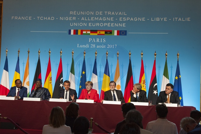 Mahamadou Issoufou, Idriss Deby, Emmanuel Macron, Angela Merkel, Mariano Rajoy, Paolo Gentiloni, Fayez el-Sarraj