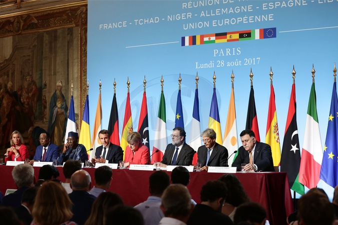 Mahamadou Issoufou, Idriss Deby, Emmanuel Macron, Angela Merkel, Mariano Rajoy, Paolo Gentiloni, Fayez el-Sarraj