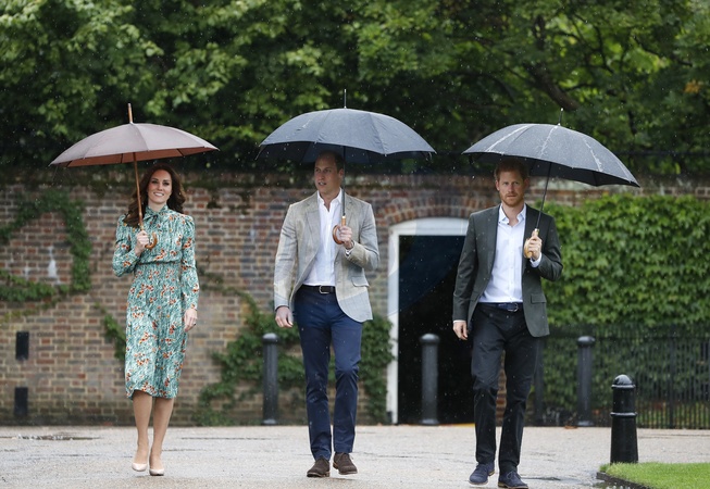 ksiezna Kate, ksiaze William i ksiaze Harry pod parasolami w 20. rocznice smierci Diany
