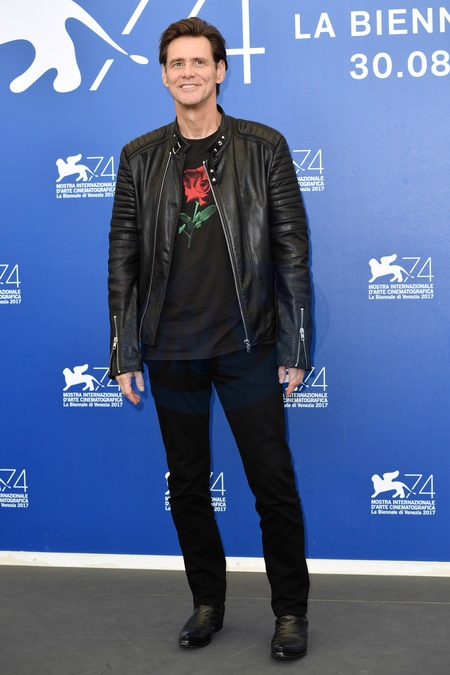 Wenecja - Jim Carey w bluzce z roza i skorzanej kurtce