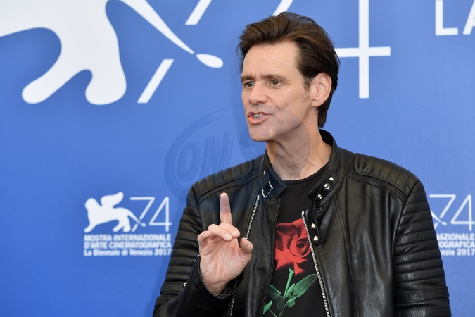 Wenecja - Jim Carey w bluzce z roza i skorzanej kurtce
