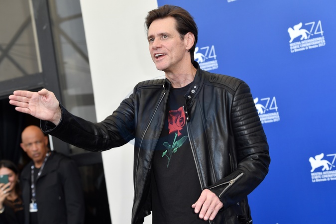 Wenecja - Jim Carey w bluzce z roza i skorzanej kurtce