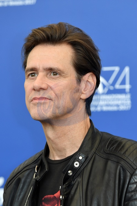 Wenecja - Jim Carey w bluzce z roza i skorzanej kurtce