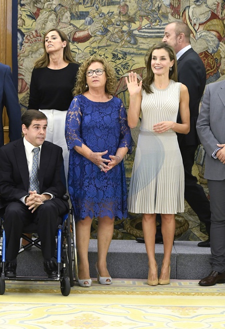 Krolowa Letizia w sukience w paseczki na audiencji w Zarzuela Palace