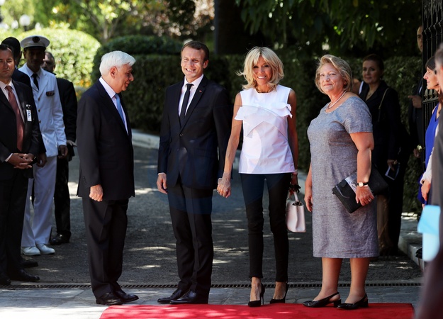 Prokopis Pavlopoulos, Emmanuel Macron, Brigitte Macron, Vlassia Pavlopoulou-Peltsemi