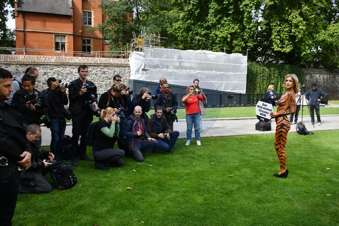 Joanna Krupa na nago, pomalowana w tygrysie wzory w akcji PETA