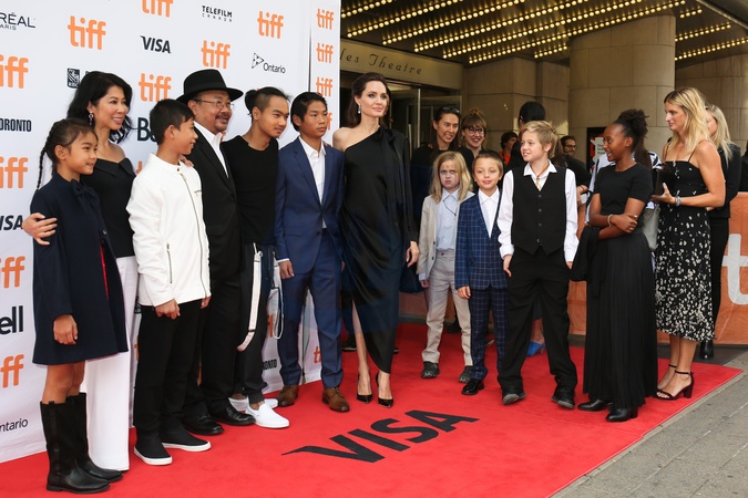 Writer Loung Ung, Rithy Panh, Angelina Jolie, Maddox, Pax, Vivienne, Knox, Shiloh, Zahara