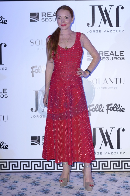 Lindsay Lohan w czerwonej sukience na Madrid Fashion Week