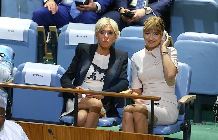 Brigitte Macron czeka na przemowienie meza w NY