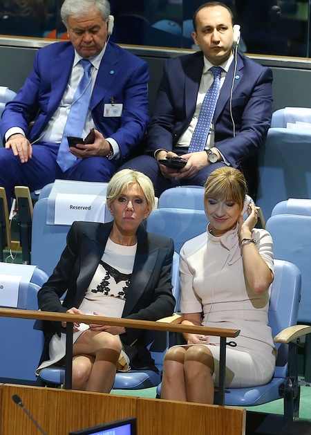 Brigitte Macron czeka na przemowienie meza w NY