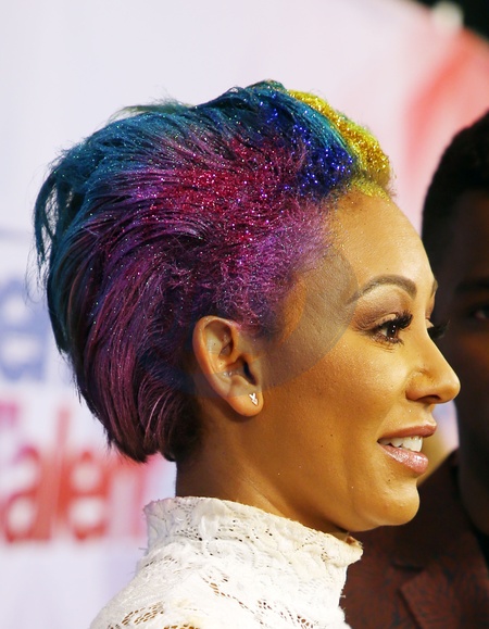 Mel B w kolorowych wlosach i w koronkowym kombinezonie