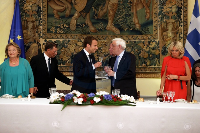 Macronowie na uroczystej kolacji w Grecji