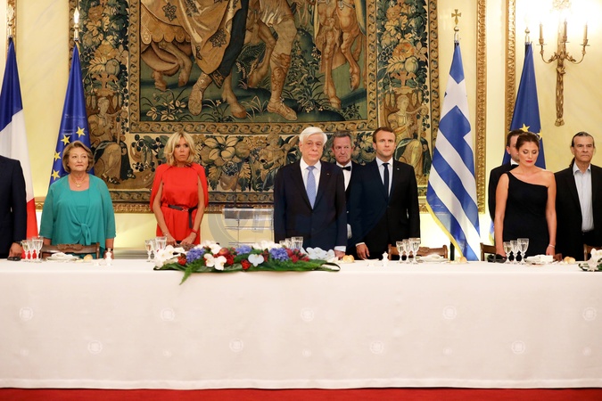 Alexis Tsipras, lVlassia Pavlopoulou-Peltsemi, Brigitte Macron, Prokopis Pavlopoulos, Emmanuel Macron, Betty Batziana