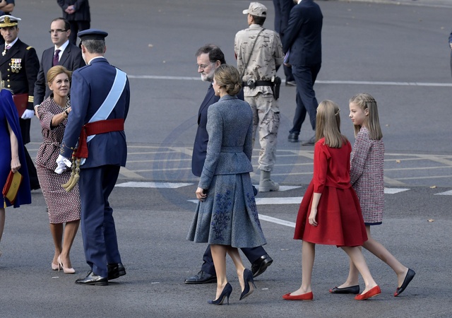 Hiszpanska rodzina krolewska na paradzie militarnej