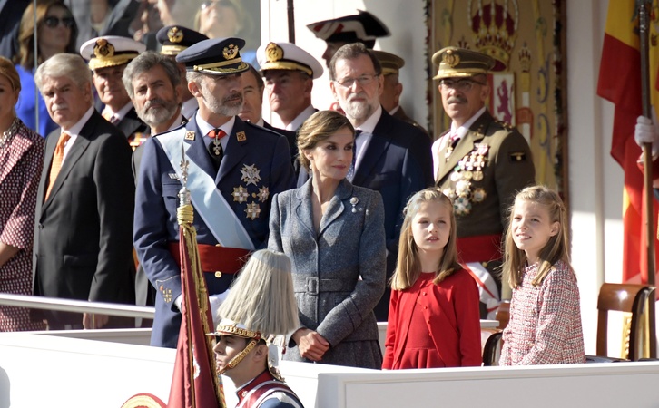 Hiszpanska rodzina krolewska na paradzie militarnej