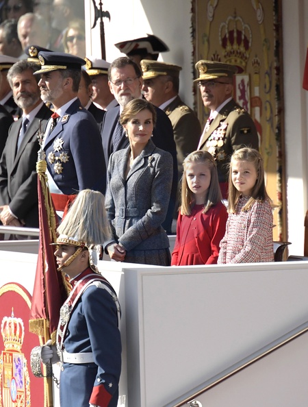 Hiszpanska rodzina krolewska na paradzie militarnej