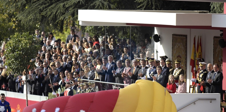 Hiszpanska rodzina krolewska na paradzie militarnej