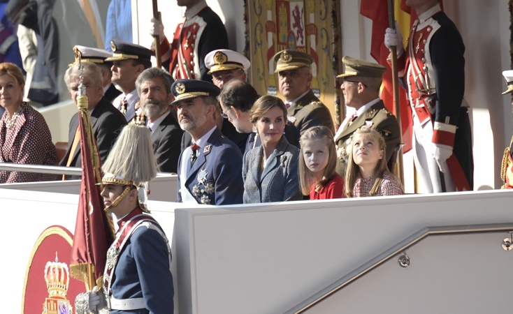 Hiszpanska rodzina krolewska na paradzie militarnej