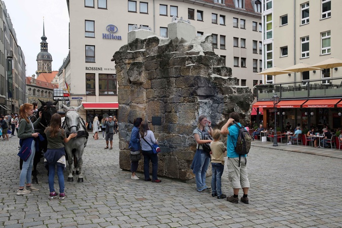Drezno sciana katedry zniszczonej w czasie wojny