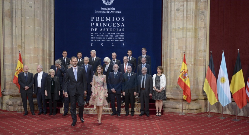 Krolowa Letizia w sukience Caroliny Herrery i krol Filip na ceremonii wreczenia nagrod Ksiezniczki Asturii