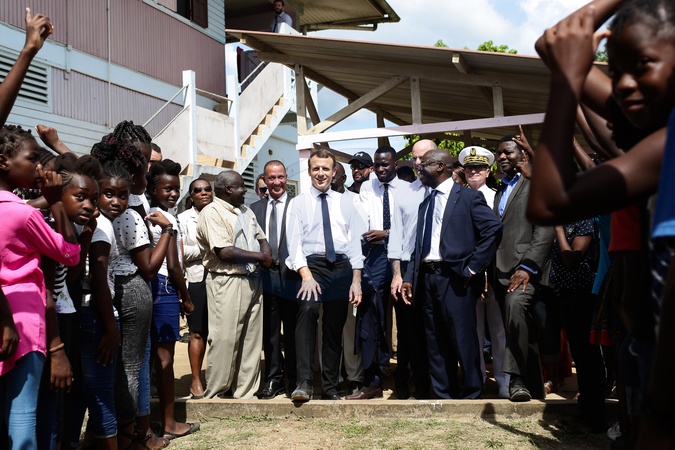 Emmanuel Macron podczas wizyty w Gujanie Francuskiej