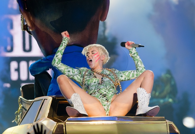 Miley Cyrus wygina sie na scenie w Manchesterze