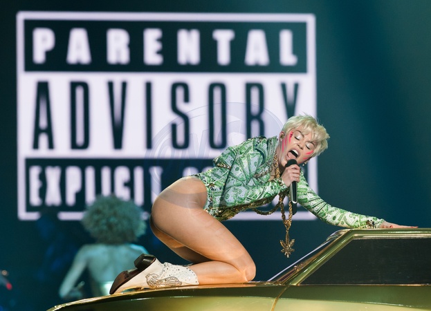 Miley Cyrus wygina sie na scenie w Manchesterze