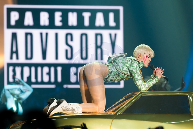 Miley Cyrus wygina sie na scenie w Manchesterze