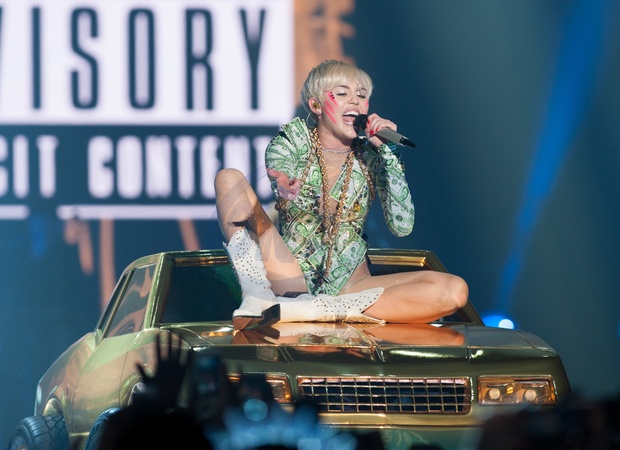 Miley Cyrus wygina sie na scenie w Manchesterze