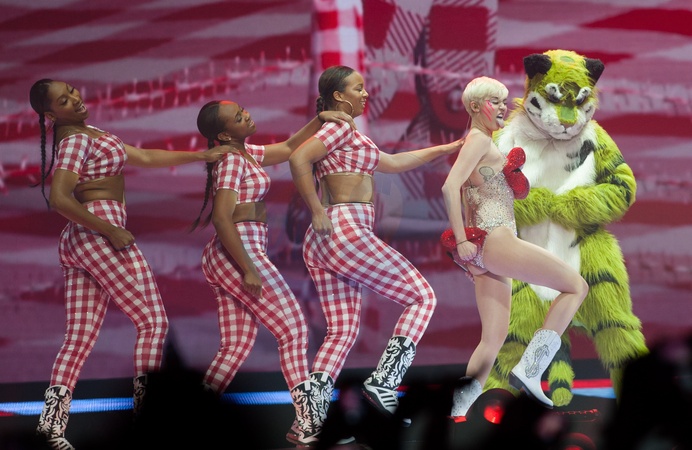 Miley Cyrus wygina sie na scenie w Manchesterze