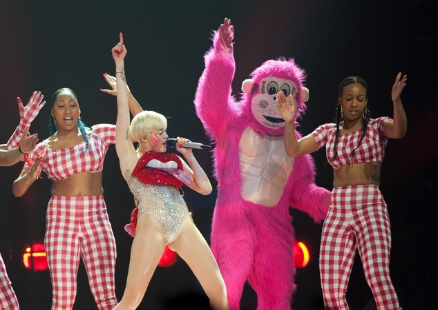 Miley Cyrus wygina sie na scenie w Manchesterze