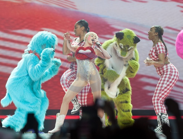 Miley Cyrus wygina sie na scenie w Manchesterze