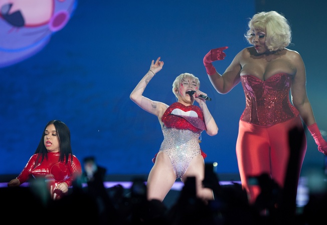 Miley Cyrus wygina sie na scenie w Manchesterze