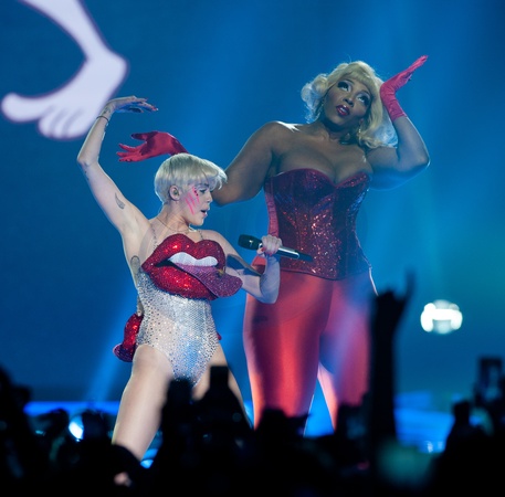 Miley Cyrus wygina sie na scenie w Manchesterze