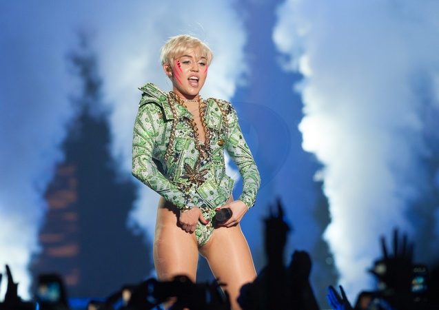 Miley Cyrus wygina sie na scenie w Manchesterze
