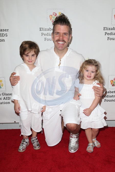 Peres Hilton z dziecmi - wszyscy ubrani na bialo i w srebrnych butach