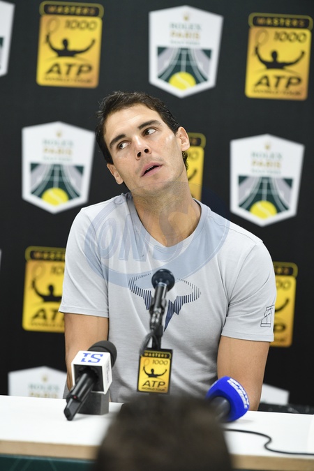 Rafael Nadal na konferencji prasowej podczas Rolex Paris Masters