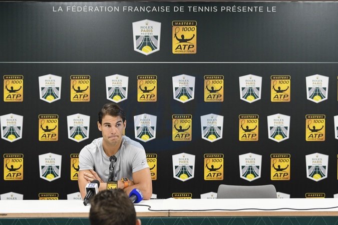 Rafael Nadal na konferencji prasowej podczas Rolex Paris Masters