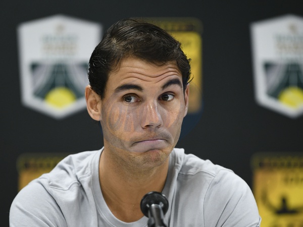Rafael Nadal na konferencji prasowej podczas Rolex Paris Masters