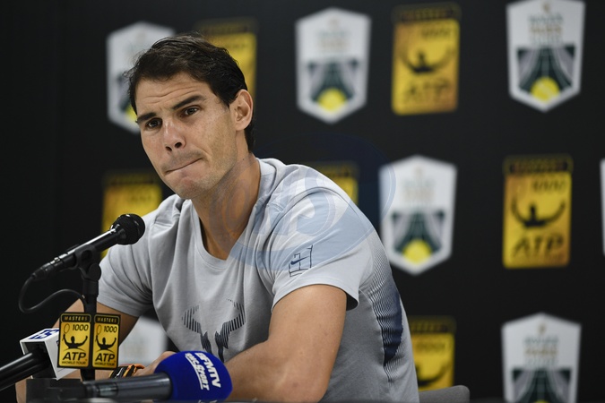 Rafael Nadal na konferencji prasowej podczas Rolex Paris Masters