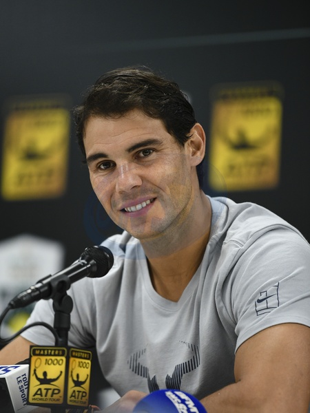Rafael Nadal na konferencji prasowej podczas Rolex Paris Masters