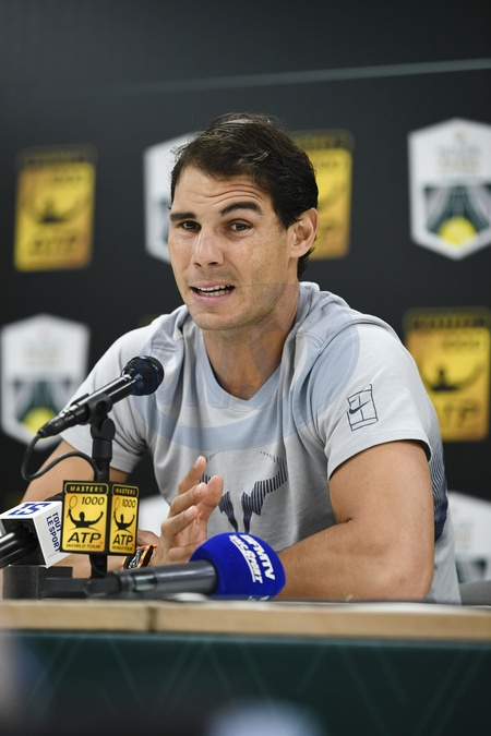Rafael Nadal na konferencji prasowej podczas Rolex Paris Masters