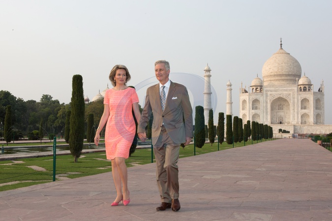 Krolowa Matylda i krol Filip pozuja przy Taj Mahal