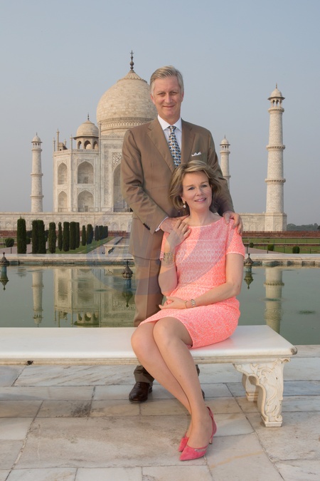 Krolowa Matylda i krol Filip pozuja przy Taj Mahal