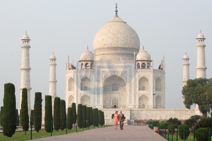 Krolowa Matylda i krol Filip pozuja przy Taj Mahal